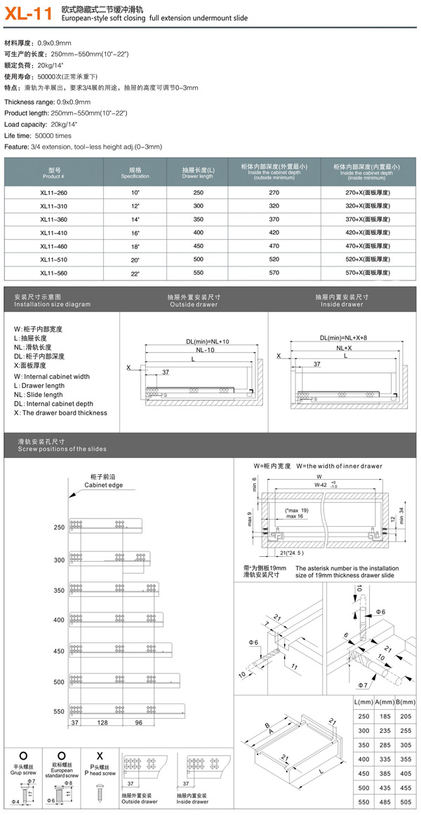 [European hidden steel ball slide] XL-105底裝