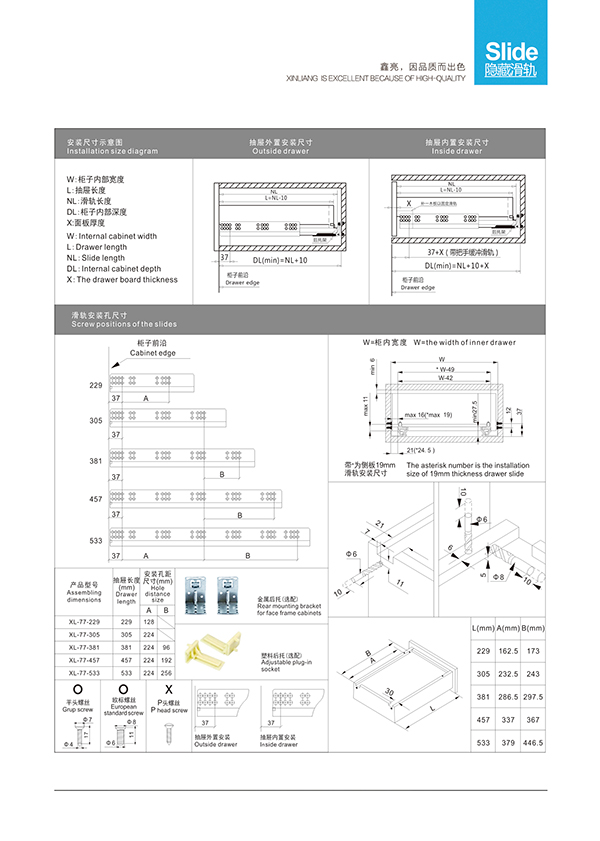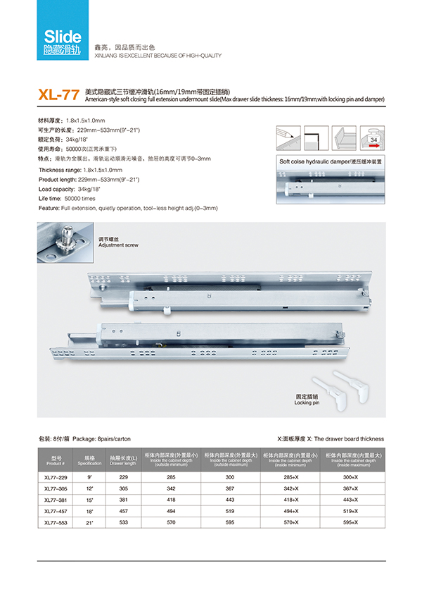 [American hidden steel ball slide] XL-66美式把手款