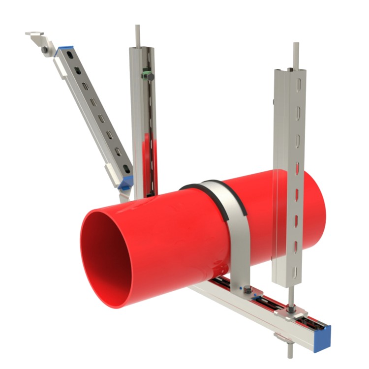 采用 C型槽鋼(gāng)和絲杠組合作杆件承載作用(立柱、斜撐、縱向斜撐、橫擔),C型槽鋼的卷邊帶鋸齒,背麵有條形安裝孔,所(suǒ)有抗震支吊架專用配件的安裝可任意搭配。