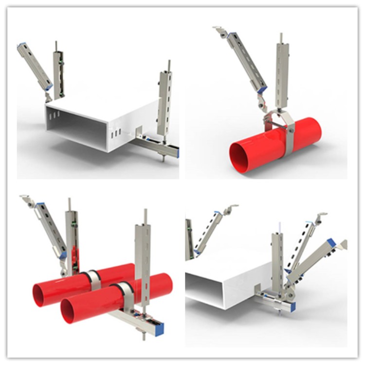 可以通(tōng)過相關構件快(kuài)速與鋼結構、混泥土等結構主(zhǔ)體進行(háng)連接(jiē),組合成多種形式的成品支吊係統或抗震支吊架(jià)係統。
